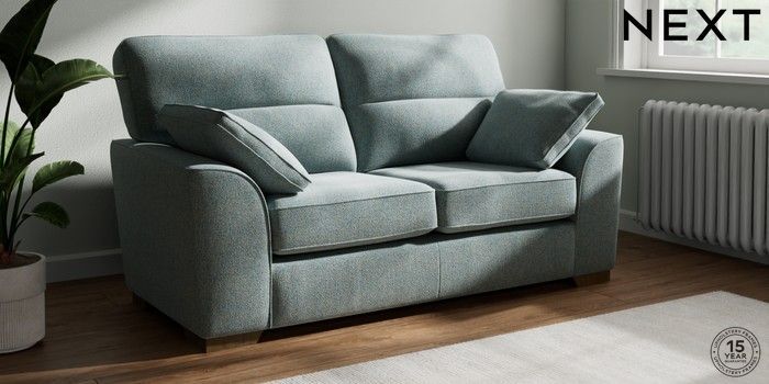 7.2.10 Stamford Highback 2 Seater Sofa Chunky Marl Mid Blue Large Square Angle - Mid | Made Click here to use our website with more accessibility support, for example screen readers