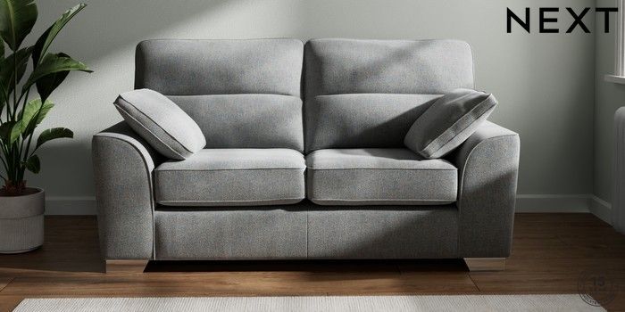 7.2.10 Stamford Highback 2 Seater Sofa Chunky Marl Mid Grey Large Square Angle - Chrome Metal | Made Click here to use our website with more accessibility support, for example screen readers