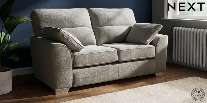 7.2.10 Stamford Highback 2 Seater Sofa Chunky Texture Dove Large Square Angle - Chrome Metal | Made Click here to use our website with more accessibility support, for example screen readers