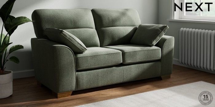7.2.10 Stamford Highback 2 Seater Sofa Chunky Texture Mid Forest Green Large Square Angle - Brushed Brass | Made Click here to use our website with more accessibility support, for example screen readers