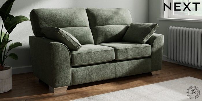 7.2.10 Stamford Highback 2 Seater Sofa Chunky Texture Mid Forest Green Large Square Angle - Chrome Metal | Made Click here to use our website with more accessibility support, for example screen readers