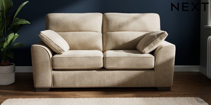 7.2.10 Stamford Highback 2 Seater Sofa Chunky Weave Cream Large Square Angle - Gunmetal | Made Click here to use our website with more accessibility support, for example screen readers