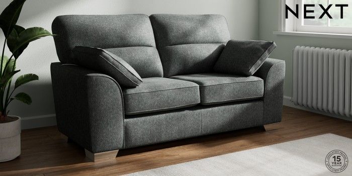 7.2.10 Stamford Highback 2 Seater Sofa Cotswold Chenille Dark Grey Large Square Angle - Chrome Metal | Made Click here to use our website with more accessibility support, for example screen readers