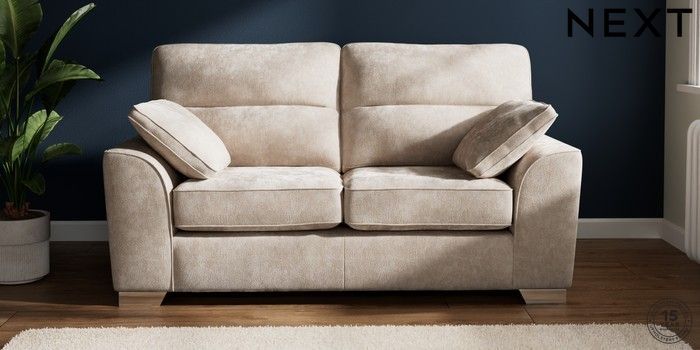 7.2.10 Stamford Highback 2 Seater Sofa Distressed Velour Mid Natural Large Square Angle - Chrome Metal | Made Click here to use our website with more accessibility support, for example screen readers