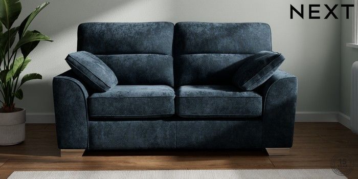 7.2.10 Stamford Highback 2 Seater Sofa Distressed Velour Midnight Blue Large Square Angle - Chrome Metal | Made Click here to use our website with more accessibility support, for example screen readers
