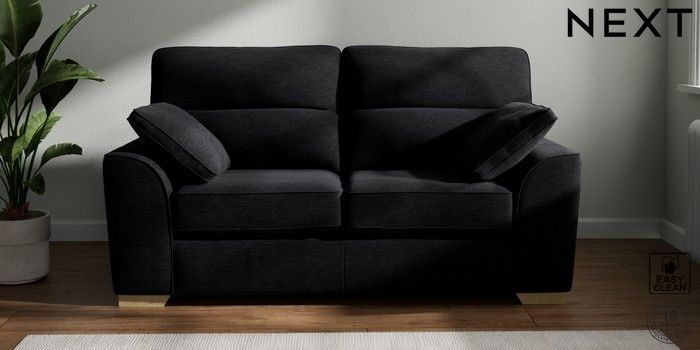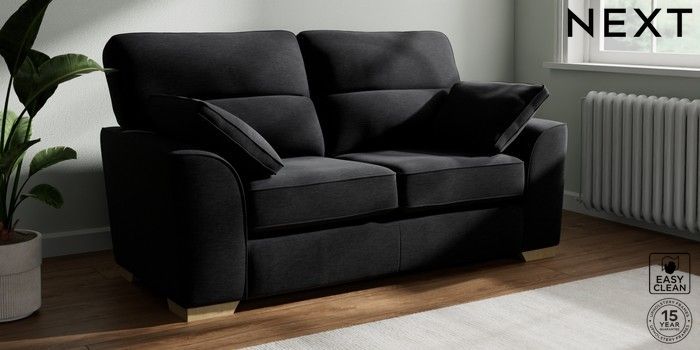 7.2.10 Stamford Highback 2 Seater Sofa Fine Chenille Easy Clean Black Large Square Angle - Light | Made Click here to use our website with more accessibility support, for example screen readers
