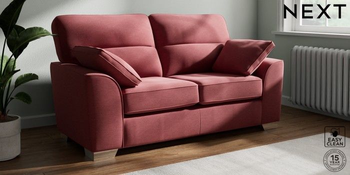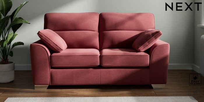 7.2.10 Stamford Highback 2 Seater Sofa Fine Chenille Easy Clean Mid Pink Large Square Angle - Chrome Metal | Made Click here to use our website with more accessibility support, for example screen readers