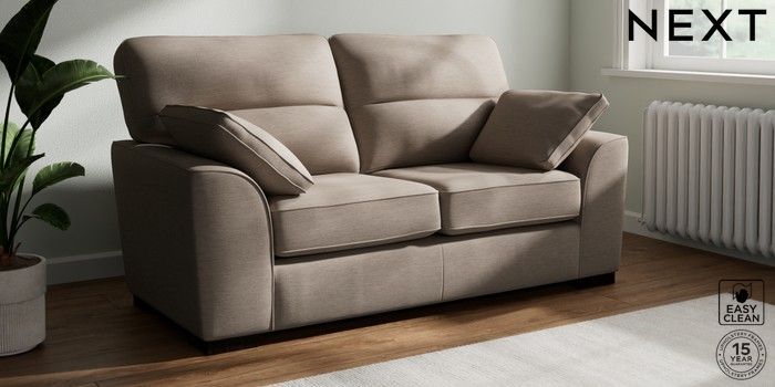 7.2.10 Stamford Highback 2 Seater Sofa Fine Chenille Easy Clean Mid Taupe Brown Large Square Angle - Dark | Made Click here to use our website with more accessibility support, for example screen readers