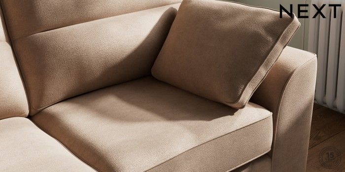 7.2.10 Stamford Highback 2 Seater Sofa Luxe Chenille Mid Natural Large Square Angle - Chrome Metal | Made Click here to use our website with more accessibility support, for example screen readers