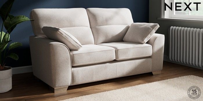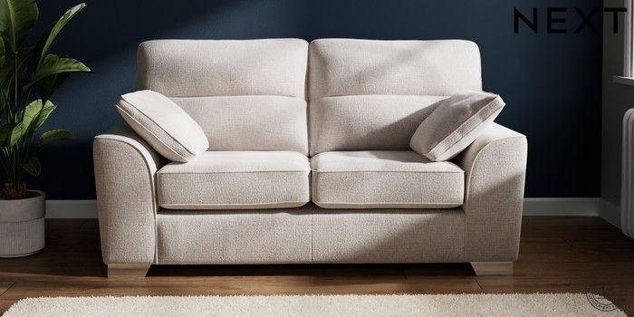 7.2.10 Stamford Highback 2 Seater Sofa Multi Weave Oyster Large Square Angle - Chrome Metal | Made Click here to use our website with more accessibility support, for example screen readers