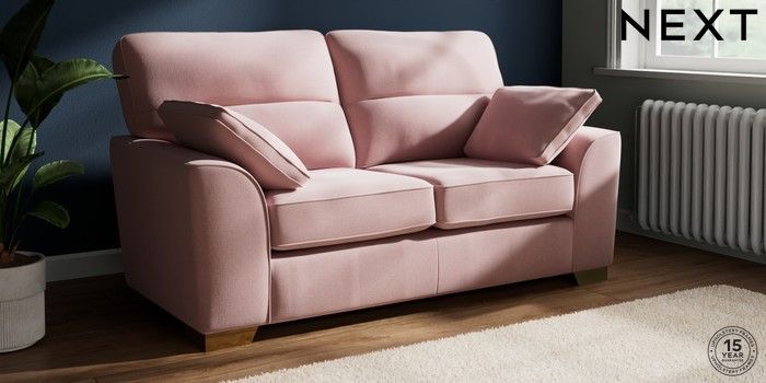 7.2.10 Stamford Highback 2 Seater Sofa Natural Mix Light Rose Pink Large Square Angle - Brushed Brass | Made Click here to use our website with more accessibility support, for example screen readers