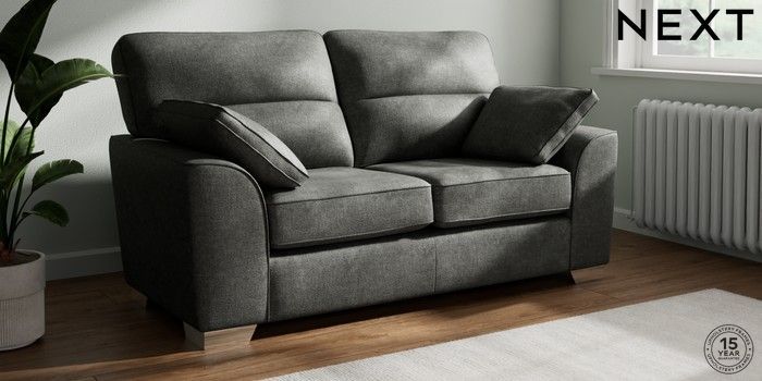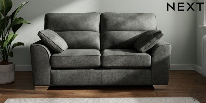 7.2.10 Stamford Highback 2 Seater Sofa Plush Chenille Dark Grey Large Square Angle - Chrome Metal | Made Click here to use our website with more accessibility support, for example screen readers