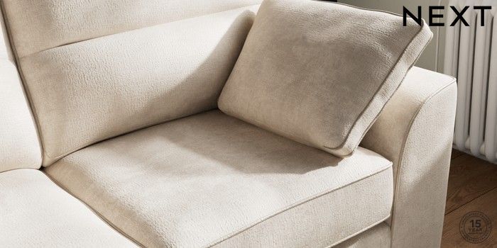 7.2.10 Stamford Highback 2 Seater Sofa Plush Chenille Oyster Large Square Angle - Brushed Brass | Made Click here to use our website with more accessibility support, for example screen readers