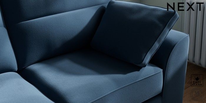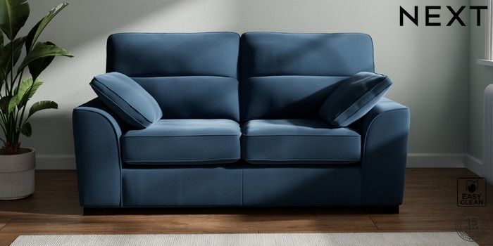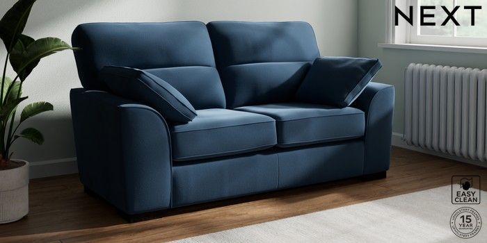 7.2.10 Stamford Highback 2 Seater Sofa Plush Velvet Easy Clean Airforce Blue Large Square Angle - Dark | Made Click here to use our website with more accessibility support, for example screen readers