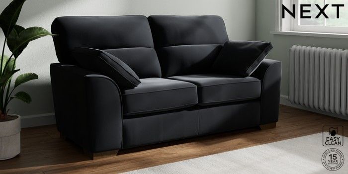 7.2.10 Stamford Highback 2 Seater Sofa Plush Velvet Easy Clean Charcoal Grey Large Square Angle - Mid | Made Click here to use our website with more accessibility support, for example screen readers