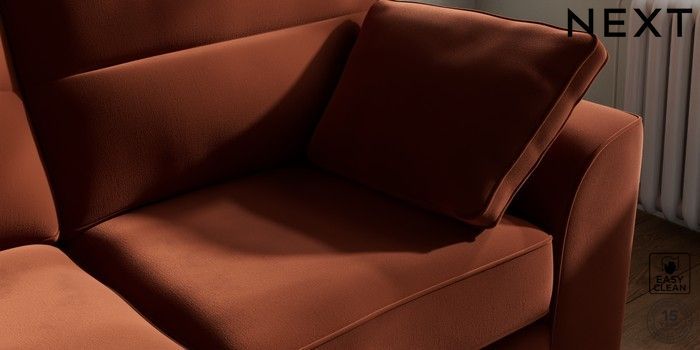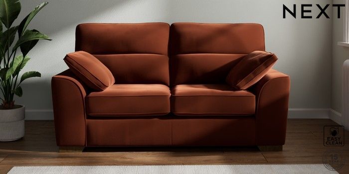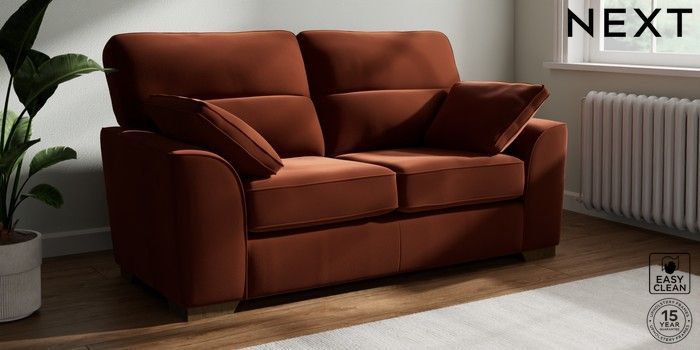 7.2.10 Stamford Highback 2 Seater Sofa Plush Velvet Easy Clean Ginger Orange Large Square Angle - Mid | Made Click here to use our website with more accessibility support, for example screen readers