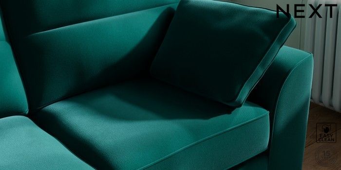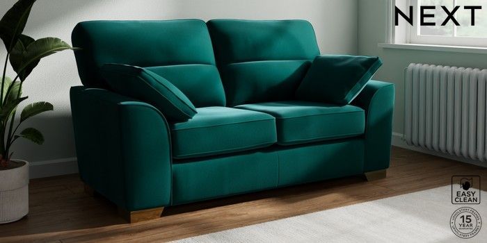 7.2.10 Stamford Highback 2 Seater Sofa Plush Velvet Easy Clean Juniper Green Large Square Angle - Brushed Brass | Made Click here to use our website with more accessibility support, for example screen readers