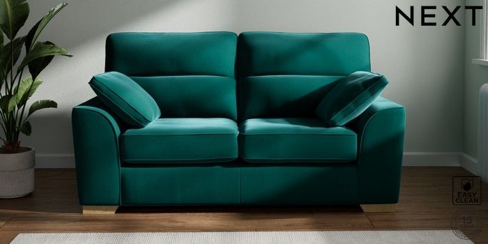 7.2.10 Stamford Highback 2 Seater Sofa Plush Velvet Easy Clean Juniper Green Large Square Angle - Light | Made Click here to use our website with more accessibility support, for example screen readers