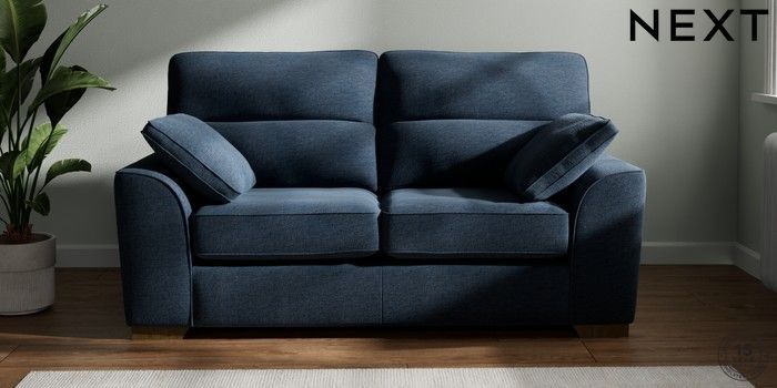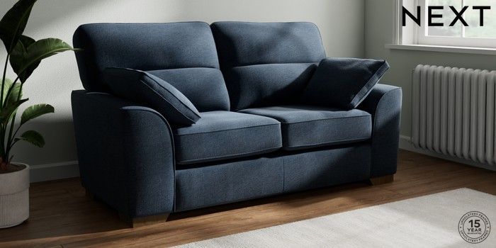 7.2.10 Stamford Highback 2 Seater Sofa Ripple Chenille Dark Blue Large Square Angle - Mid | Made Click here to use our website with more accessibility support, for example screen readers