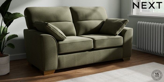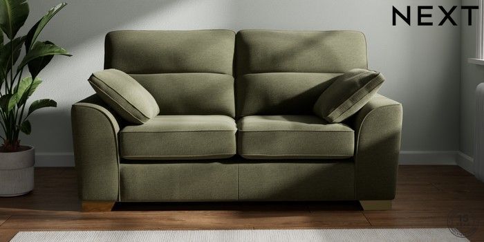 7.2.10 Stamford Highback 2 Seater Sofa Ripple Chenille Mid Moss Green Large Square Angle - Brushed Brass | Made Click here to use our website with more accessibility support, for example screen readers