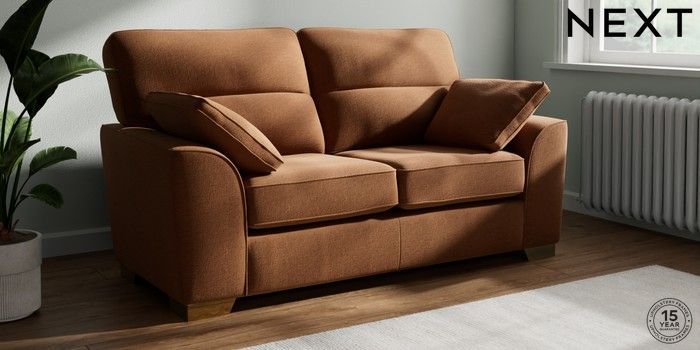 7.2.10 Stamford Highback 2 Seater Sofa Ripple Chenille Mid Rust Brown Large Square Angle - Brushed Brass | Made Click here to use our website with more accessibility support, for example screen readers