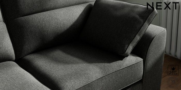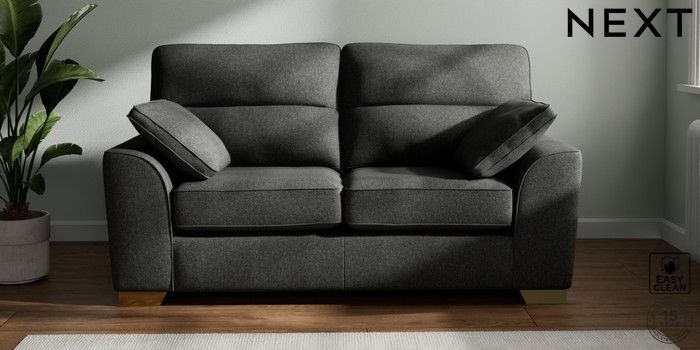 7.2.10 Stamford Highback 2 Seater Sofa Tweedy Blend Easy Clean Charcoal Grey Large Square Angle - Brushed Brass | Made Click here to use our website with more accessibility support, for example screen readers