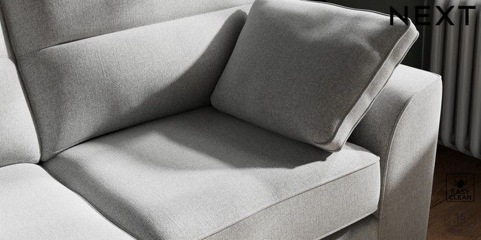 7.2.10 Stamford Highback 2 Seater Sofa Tweedy Blend Easy Clean Light Silver Grey Large Square Angle - Brushed Brass | Made Click here to use our website with more accessibility support, for example screen readers
