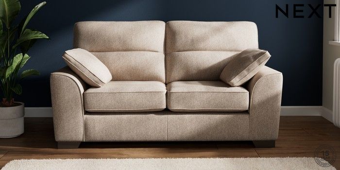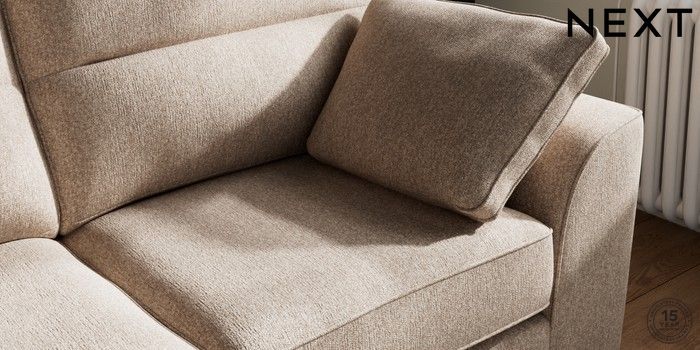 7.2.10 Stamford Highback 2 Seater Sofa Tweedy Chenille Mid Natural Large Square Angle - Gunmetal | Made Click here to use our website with more accessibility support, for example screen readers
