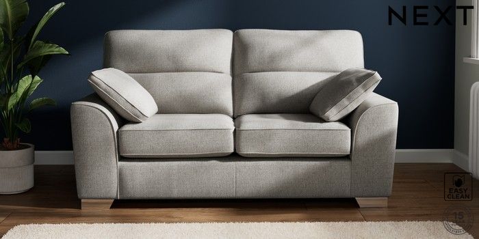 7.2.10 Stamford Highback 2 Seater Sofa Woven Chenille Easy Clean Light Grey Large Square Angle - Chrome Metal | Made Click here to use our website with more accessibility support, for example screen readers