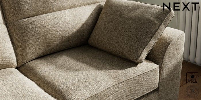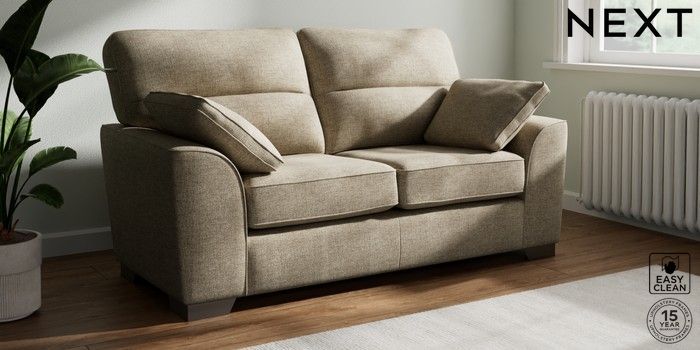 7.2.10 Stamford Highback 2 Seater Sofa Woven Chenille Easy Clean Mid Natural Large Square Angle - Gunmetal | Made Click here to use our website with more accessibility support, for example screen readers