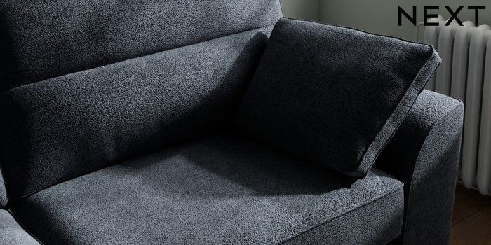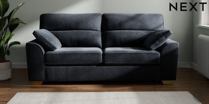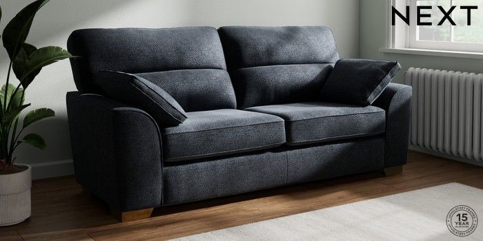 7.2.10 Stamford Highback 3 Seater Sofa Boucle Chenille Dark Slate Blue Large Square Angle - Brushed Brass | Made Click here to use our website with more accessibility support, for example screen readers