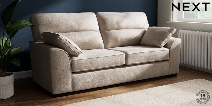 7.2.10 Stamford Highback 3 Seater Sofa Boucle Chenille Light Natural Large Square Angle - Dark | Made Click here to use our website with more accessibility support, for example screen readers