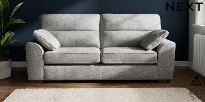 7.2.10 Stamford Highback 3 Seater Sofa Chunky Boucle Easy Clean Light Grey Large Square Angle - Mid | Made Click here to use our website with more accessibility support, for example screen readers