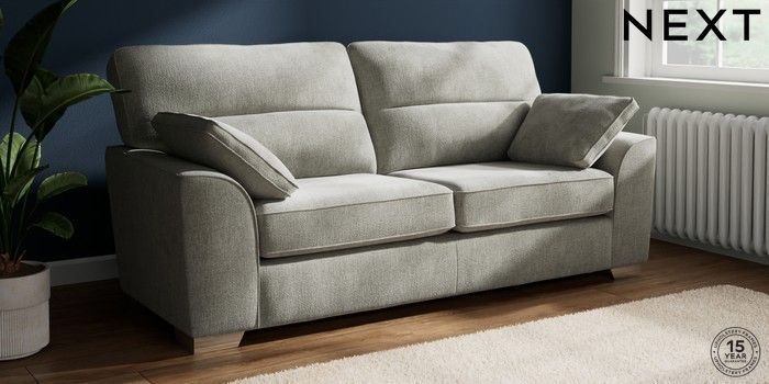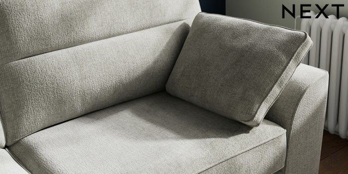 7.2.10 Stamford Highback 3 Seater Sofa Chunky Chenille Light Grey Large Square Angle - Chrome Metal | Made Click here to use our website with more accessibility support, for example screen readers
