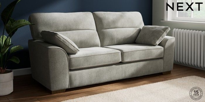 7.2.10 Stamford Highback 3 Seater Sofa Chunky Chenille Light Grey Large Square Angle - Mid | Made Click here to use our website with more accessibility support, for example screen readers