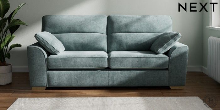 7.2.10 Stamford Highback 3 Seater Sofa Chunky Chenille Light Teal Green Large Square Angle - Light | Made Click here to use our website with more accessibility support, for example screen readers