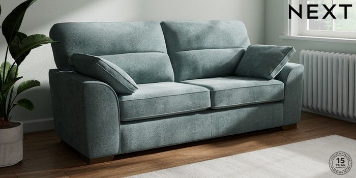7.2.10 Stamford Highback 3 Seater Sofa Chunky Chenille Light Teal Green Large Square Angle - Mid | Made Click here to use our website with more accessibility support, for example screen readers