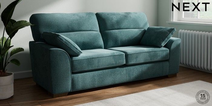 7.2.10 Stamford Highback 3 Seater Sofa Chunky Chenille Mid Teal Green Large Square Angle - Mid | Made Click here to use our website with more accessibility support, for example screen readers