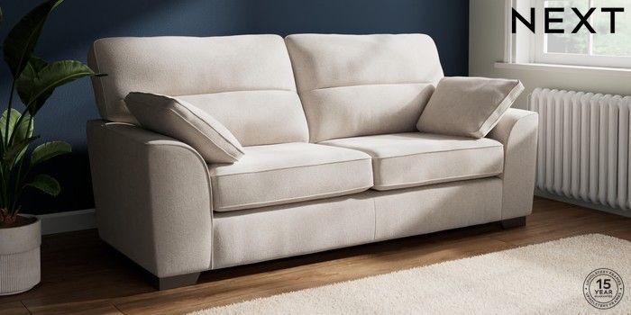 7.2.10 Stamford Highback 3 Seater Sofa Chunky Chenille Oyster Large Square Angle - Gunmetal | Made Click here to use our website with more accessibility support, for example screen readers