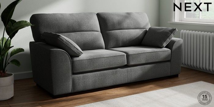 7.2.10 Stamford Highback 3 Seater Sofa Chunky Texture Dark Grey Large Square Angle - Dark | Made Click here to use our website with more accessibility support, for example screen readers
