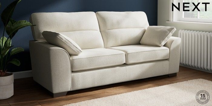7.2.10 Stamford Highback 3 Seater Sofa Chunky Texture Oyster Large Square Angle - Gunmetal | Made Click here to use our website with more accessibility support, for example screen readers
