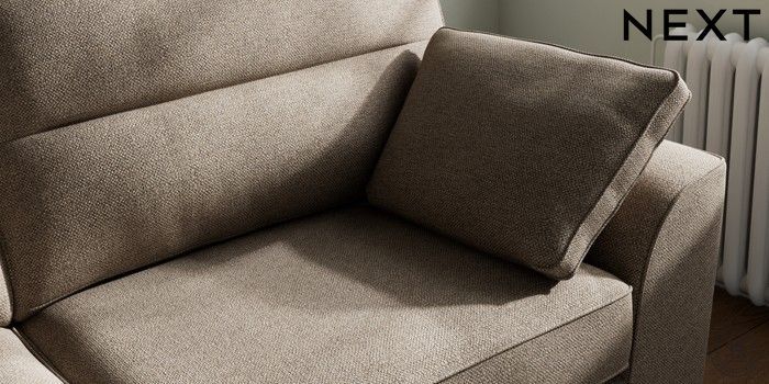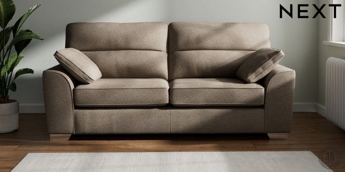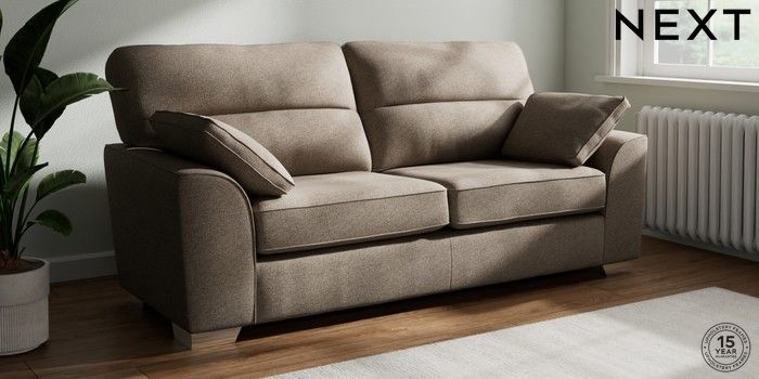 7.2.10 Stamford Highback 3 Seater Sofa Chunky Weave Dark Natural Large Square Angle - Chrome Metal | Made Click here to use our website with more accessibility support, for example screen readers