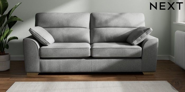 7.2.10 Stamford Highback 3 Seater Sofa Chunky Weave Mid Grey Large Square Angle - Light | Made Click here to use our website with more accessibility support, for example screen readers