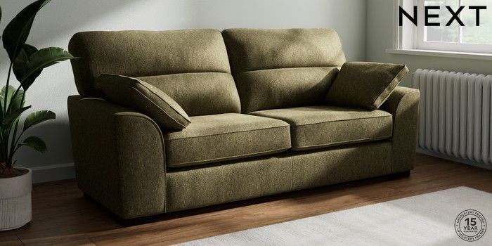 7.2.10 Stamford Highback 3 Seater Sofa Cotswold Chenille Dark Green Large Square Angle - Dark | Made Click here to use our website with more accessibility support, for example screen readers