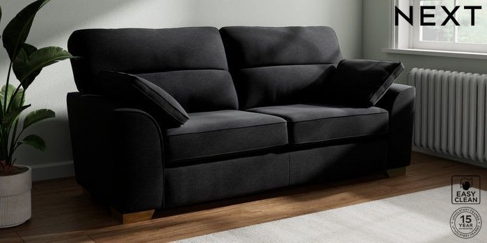 7.2.10 Stamford Highback 3 Seater Sofa Fine Chenille Easy Clean Black Large Square Angle - Brushed Brass | Made Click here to use our website with more accessibility support, for example screen readers