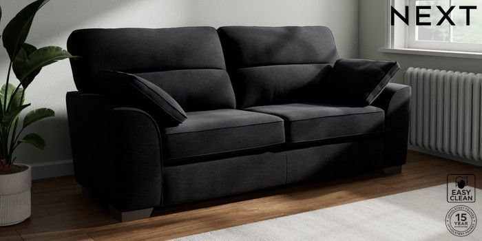7.2.10 Stamford Highback 3 Seater Sofa Fine Chenille Easy Clean Black Large Square Angle - Gunmetal | Made Click here to use our website with more accessibility support, for example screen readers