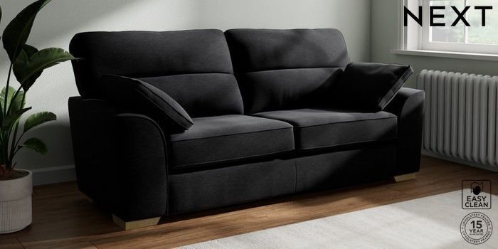 7.2.10 Stamford Highback 3 Seater Sofa Fine Chenille Easy Clean Black Large Square Angle - Light | Made Click here to use our website with more accessibility support, for example screen readers