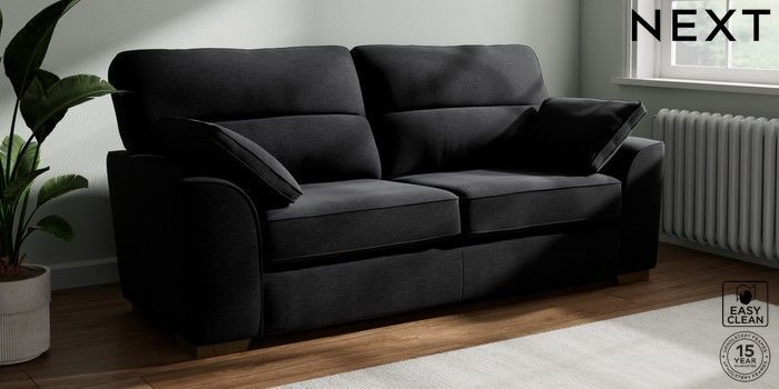7.2.10 Stamford Highback 3 Seater Sofa Fine Chenille Easy Clean Black Large Square Angle - Mid | Made Click here to use our website with more accessibility support, for example screen readers