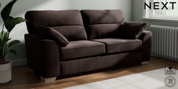 7.2.10 Stamford Highback 3 Seater Sofa Fine Chenille Easy Clean Chocolate Brown Large Square Angle - Chrome Metal | Made Click here to use our website with more accessibility support, for example screen readers