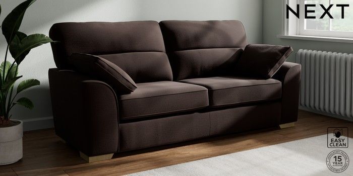 7.2.10 Stamford Highback 3 Seater Sofa Fine Chenille Easy Clean Chocolate Brown Large Square Angle - Light | Made Click here to use our website with more accessibility support, for example screen readers